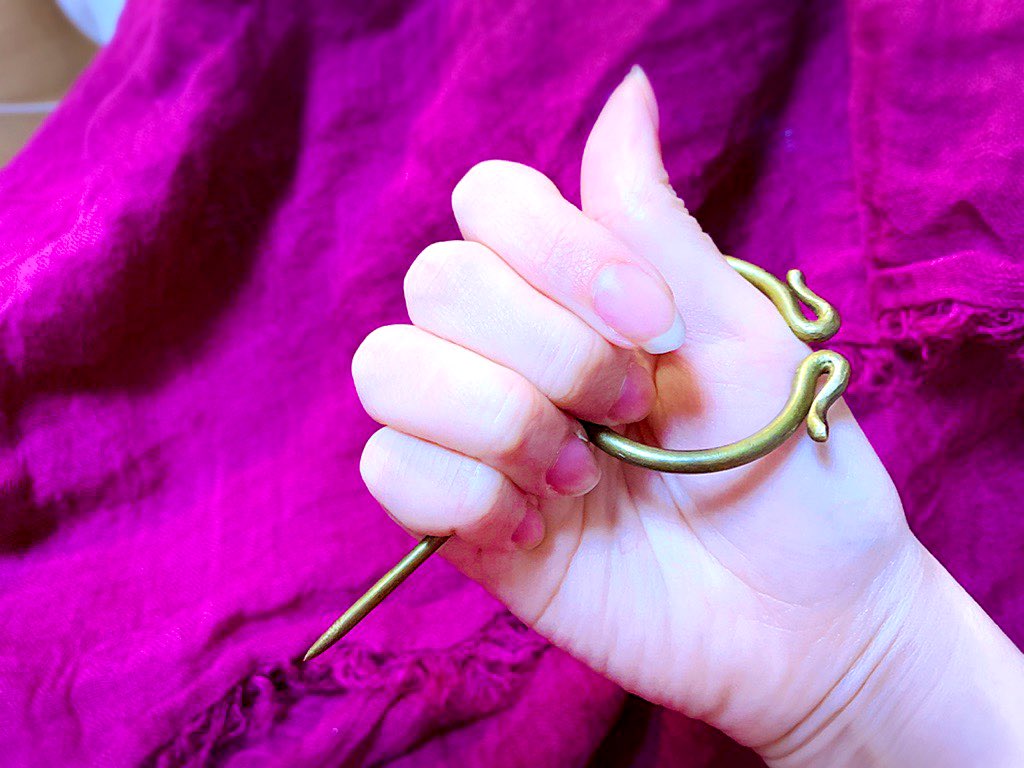 講座でご質問が多かった古代ギリシャ・ローマの服を留めるピンです。男女ともにファッションで使いますが、非力な者にとっては最後の武器でもあるアイテム。女性たちが男性を囲んでこれで刺し殺すことも当時はありました。