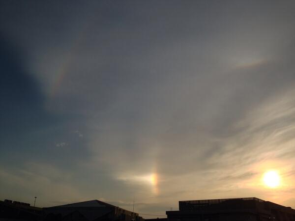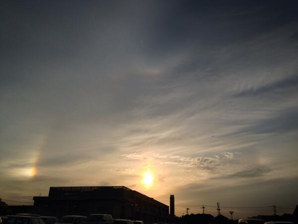大分昔の今ごろ撮った奴だけど、荒木健太郎氏の解説図(https://t.co/3LTbs3ou9B、4枚目)を見ると「22度幻日」とか「22度・46度ハロ」なのかな?ちょっと僕には判別できん(´・ω・`)。