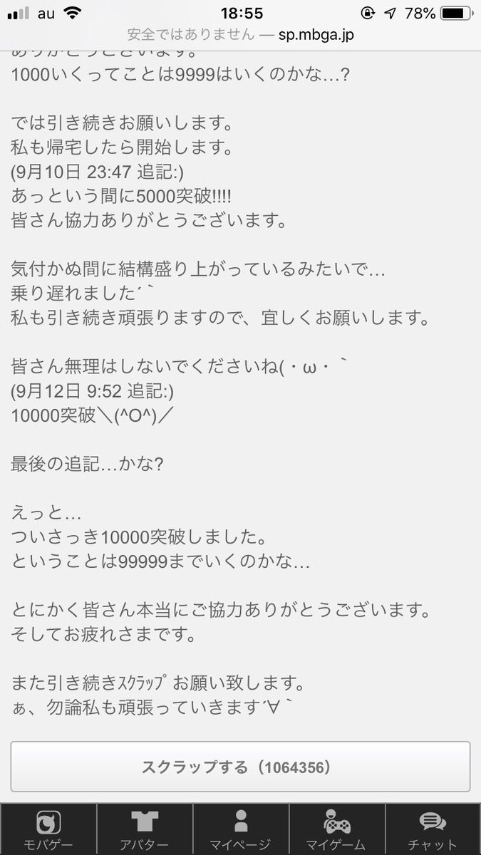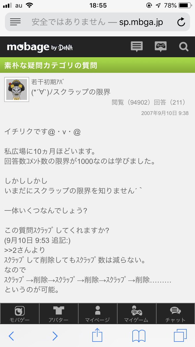 似たような感じで、某モバゲー質問広場のスクラップ機能の限界数を調べてるものがあります。現在100万超。 https://t.co/qfuneKdi7p