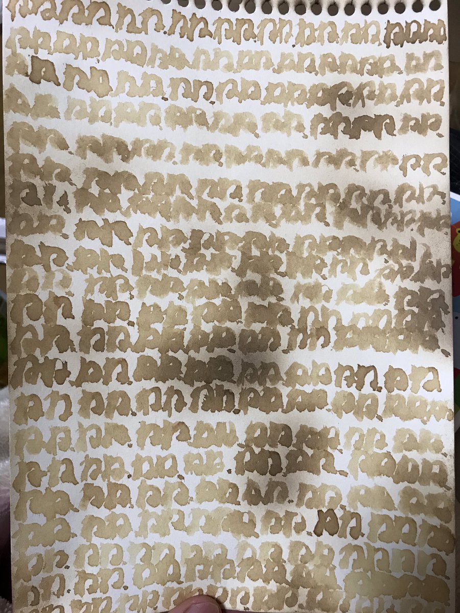 開くと30ページくらいに敷き詰められた文字。最後のページだけ裏表紙とくっついててめくれない。無理やり剥がすと、、嫌な予感は的中しました。