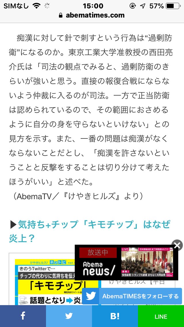 痴漢という無法に対して過剰防衛という無法で対抗するって言う世紀末な状態で法律振りかざしても聞く耳持ってくれなそう。根本的に被害者にそこまでの事を思わす前に痴漢させない、悪心を抱かせないようにするのが重要だと思うけど変態行為を防ぐ工夫って難しいのかなあ。