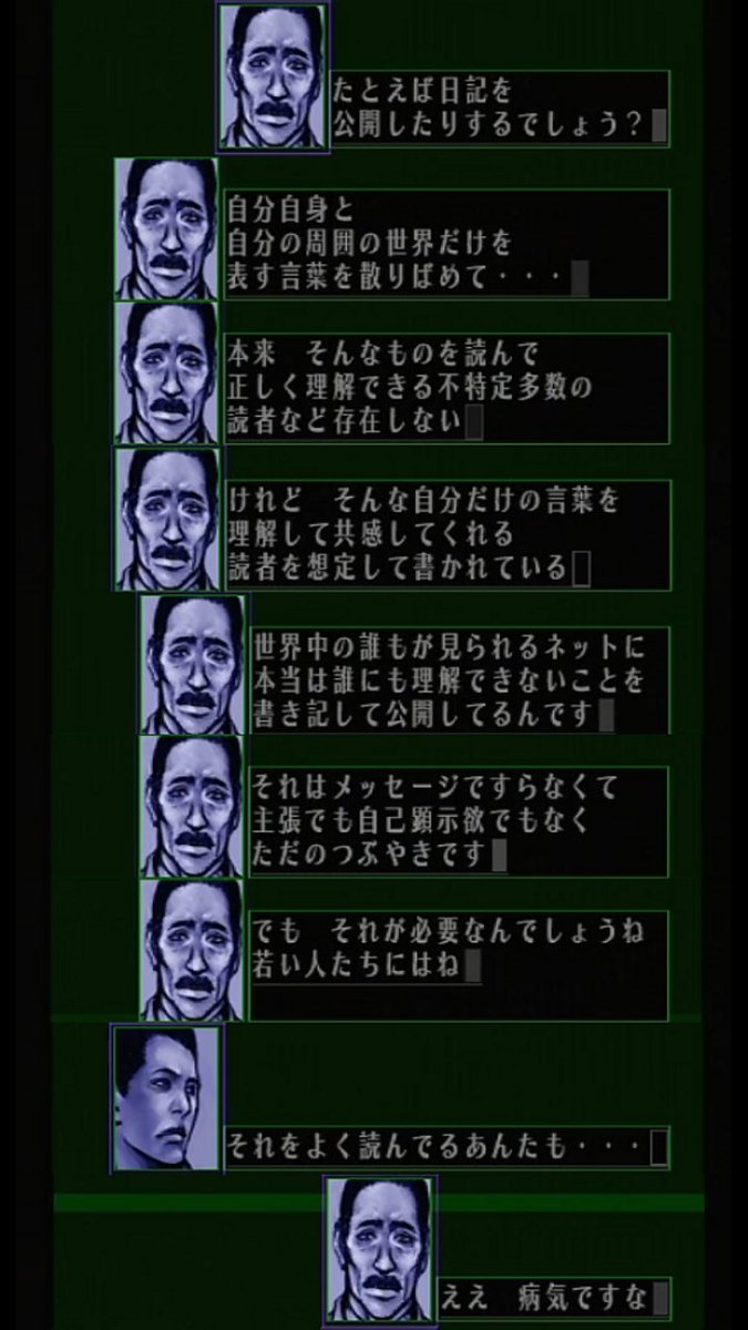 ソウルハッカーズ(1997)でも同じような台詞があるし、こっちはこれ自体ストーリーのテーマでもあったりする。今見ても古さを感じないストーリーだと思う。