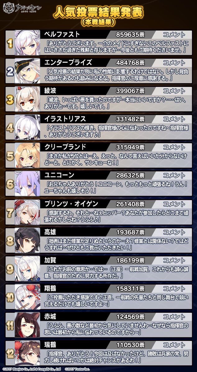 『アズールレーン人気投票2019』では、