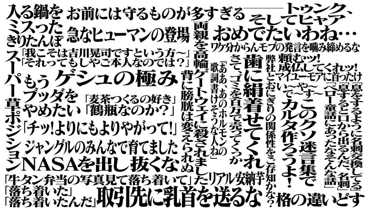 個人的には『さて、ゴミを百万で売ってくっか』『お前には守るものが多すぎる』がツボ。
