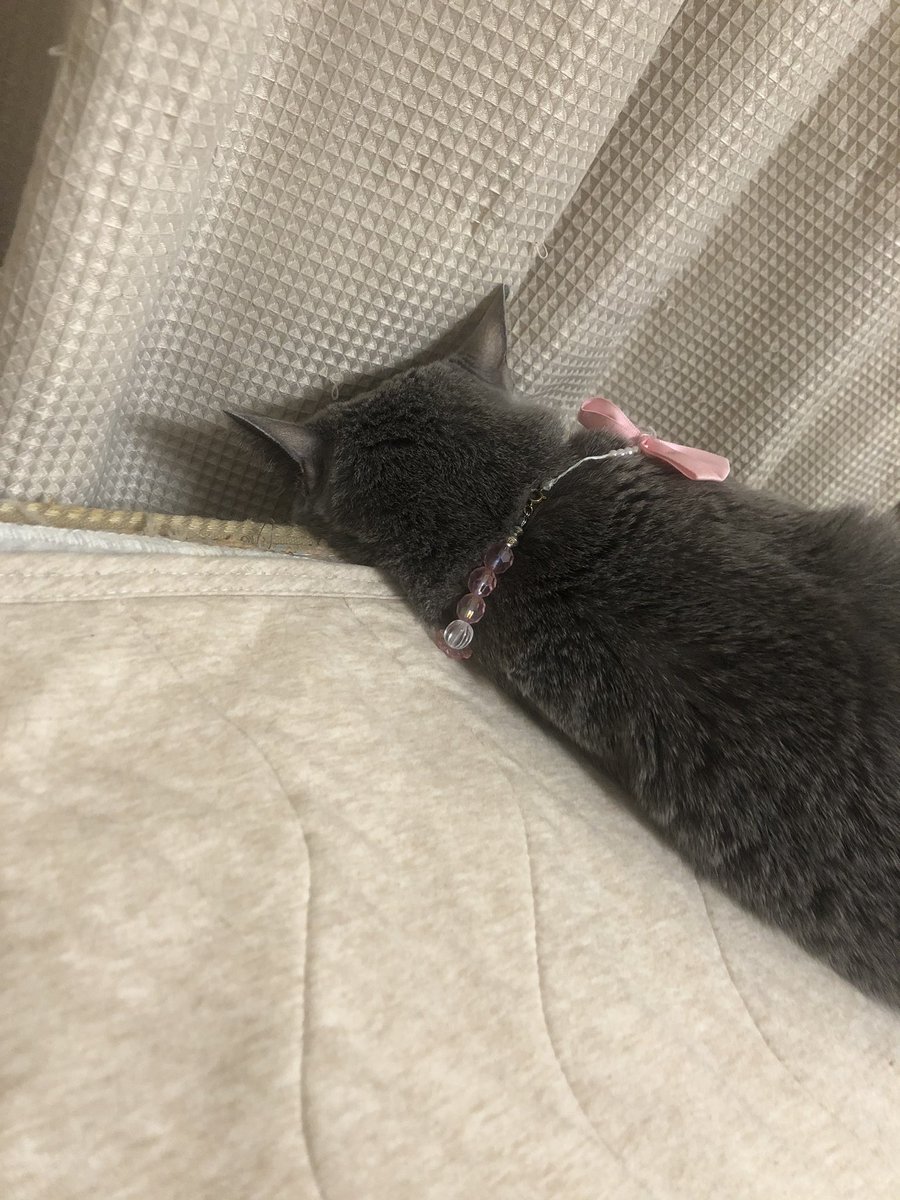 実家のみーたんこと、みつまめは、ロシアンブルーっぽい見た目の雑種なのだが…まんまこの通りである(-“”-;)