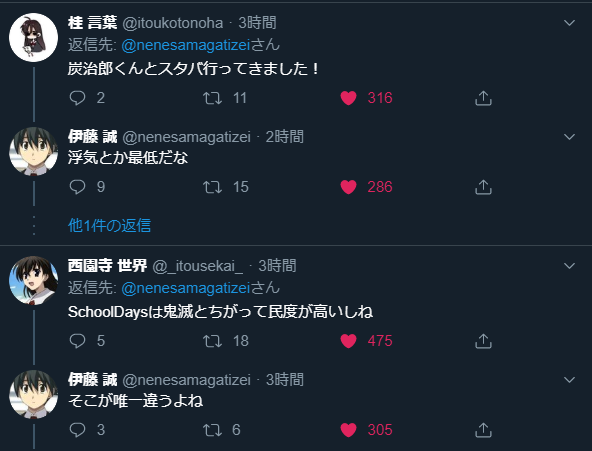 鬼滅の刃はSchool Daysのパクリ
