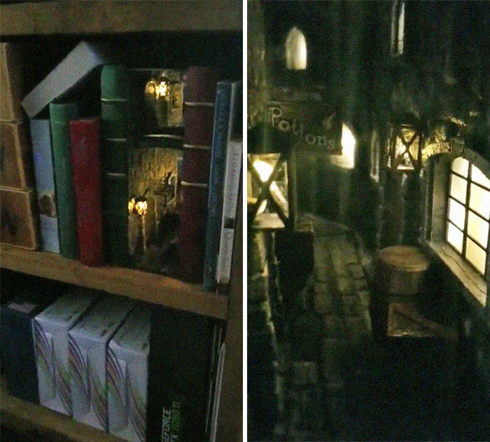 ブックヌック(Book Nook)と呼ばれる本棚に置く手作りの装飾品を紹介した記事。 https://t.co/p2BhKigyU3 小さな部品や電飾を組み合わせて、本の間に美しい空間を創出したもの。紹介されている作品の多くは、reddit にあるブックヌックの愛好家のスレッド https://t.co/kOohKiFtwT で発表されたもの。