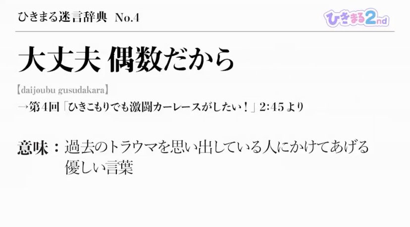 #ひきまる 2nd動画内で飛び出した迷言を集めた『ひきまる迷言辞典』スロットです!どの迷言が出たかリプライで教えてくださいね。辞典に載らなかったみなさんのお気に入りの迷言も教えてください!