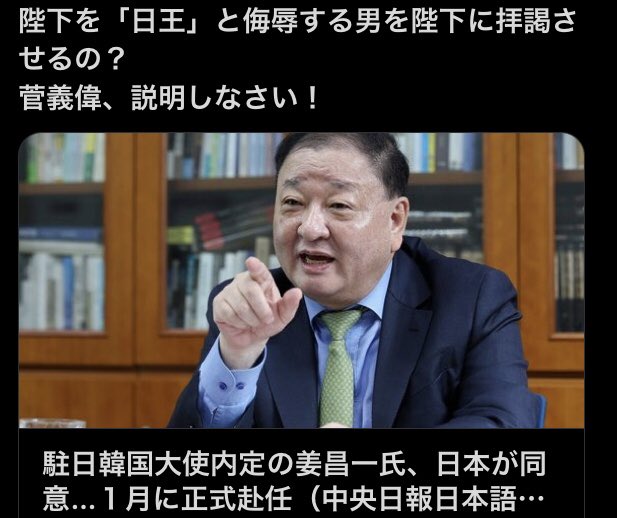 わが国は、韓国はもはや主権国家として看做さないという断固たる姿勢で臨むべき。まして、天皇陛下を「日王」と呼び、北方領土に露ビザで上陸するような人物の、大使としてのアグレマンなどもってのほかだ。 https://t.co/deFmGujmuk