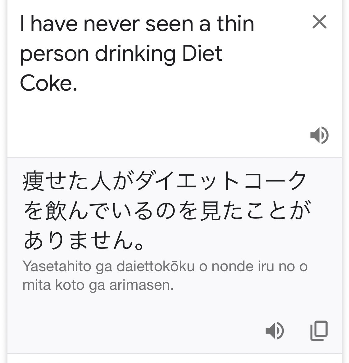 (ダイエットコークを飲んでいる痩せた人を見たことがない)