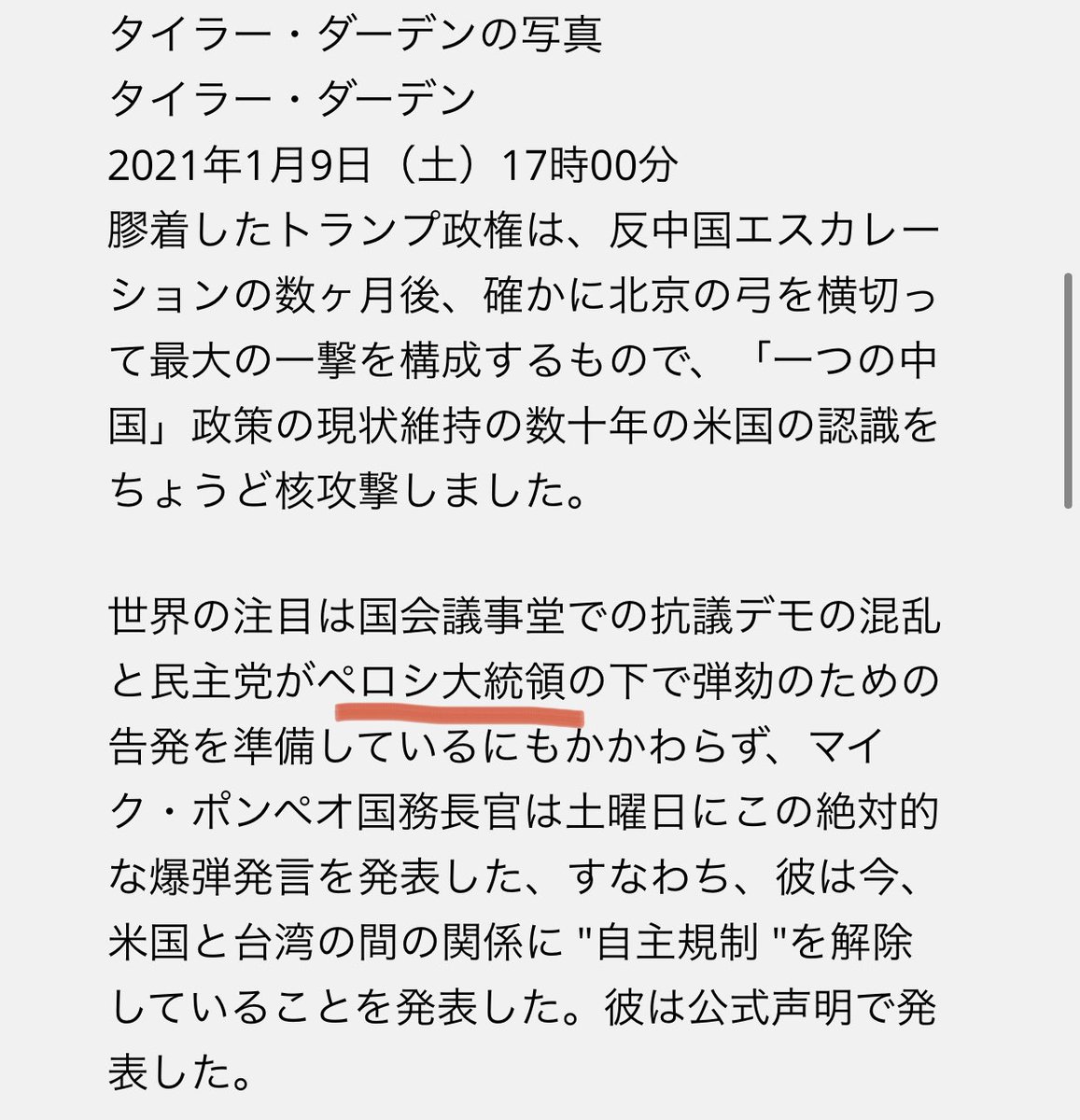 こちらの元記事に『ペロシ大統領』って有るんですけど⁉️😳💦🎌