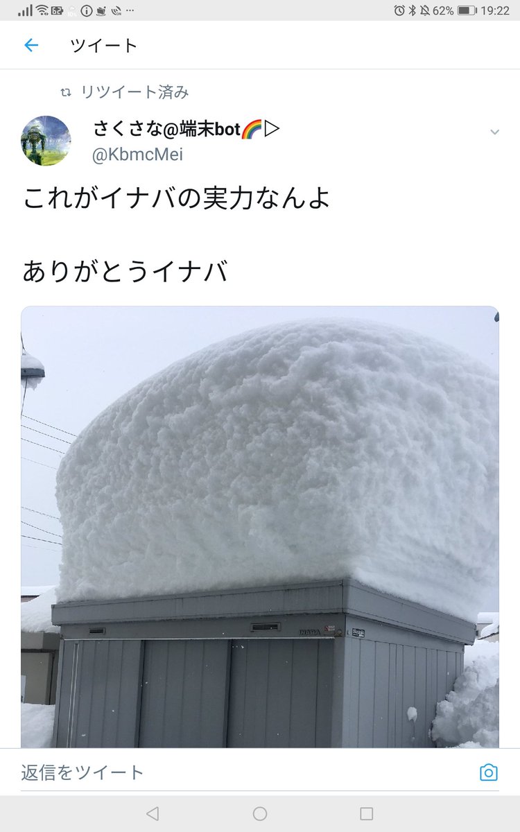 2021.01.11 ツイート maruこれがイナバの実力なんよ ありがとうイナバ さくさな@端末bot🌈▷@KbmcMeiこれがイナバの実力なんよありがとうイナバ12:02 – 2021年01月11日返信リツイートお気に入り ツイートに対するネットの反応JULIA 🤘🦊JULI METAL@grandguignol666何㌧乗っても大丈夫🙌19:35 – 2021年01月11日返信リツイートお気に入り塩漬け姐さん🇯🇵@katsubusioおお!😳19:34 – 2021年01月11日返信リツイートお気に入りり一@fuafuahoyoyo100人乗っても大丈夫ってこういうことだったんだ19:32 – 2021年01月11日返信リツイートお気に入りエルさん@越後のたぬき@erga_mio558コマーシャルの100人乗っても大丈夫はホントだったんですね…(・∀・;)19:31 – 2021年01月11日返信リツイートお気に入りつめたいおうどんリベンジ@tumetaioudoneホームベーカリー19:31 – 2021年01月11日返信リツイートお気に入りやっほう@yahhou236018デカい食パンかな?19:30 – 2021年01月11日返信リツイートお気に入り唯野(色々創る)@yuino_akiイナバ△19:30 – 2021年01月11日返信リツイートお気に入りあにまさ@tkr1747masa100人以上の重さでも大丈夫!19:29 – 2021年01月11日返信リツイートお気に入り りゅう(写真・模型・さばげ)4月までガチャ🈲@vezel4869mark2100人乗っても‼️19:28 – 2021年01月11日返信リツイートお気に入りかぴゅーん☆@capyunpyunおおおおお😳✨19:27 – 2021年01月11日返信リツイートお気に入り凪@harehareyukai70イナバの本気を見たっ…!!!19:26 – 2021年01月11日返信リツイートお気に入り数学がわからないマンボウ@gyozaIsGood100人乗ってもの意義わかんなかったんだけど、こういうことかあ19:25 – 2021年01月11日返信リツイートお気に入り飛葉 大陸@f0HRuR5RZgPhczk100人乗っても、、のcmに高校の同級生が、俺、あのcmで、屋根乗ってたんだと、言っていたのを思い出した。19:25 – 2021年01月11日返信リツイートお気に入りどんまい2マルチーズ岡野@donmai_ghaha21t乗っても!だいじょーぶ!19:25 – 2021年01月11日返信リツイートお気に入りいなば@inaba238さすがいなばさんやでぇ( ˘ω˘ )19:24 – 2021年01月11日返信リツイートお気に入り くみ@matoryousikaイナバさんすごい!!19:24 – 2021年01月11日返信リツイートお気に入りスガ@群青色のわっかめいと@Suga_Infinity流石イナバだ!なんともないぜ!19:23 – 2021年01月11日返信リツイートお気に入りNHK出演ラノベ作家📖常陸之介寛浩🙇🎊重版連発中🙇 🙇一期一会一読感謝 #東京五輪の中止@hitachinokankouセンシティブな画像らしいwww https://t.co/v75YN7zasH 19:22 – 2021年01月11日返信リツイートお気に入り滅のお弓🦖🗻🦕🌿@yumikikakuうちもイナバのバイク庫です😁19:21 – 2021年01月11日返信リツイートお気に入り真田烈火@recca370100人乗っても大丈夫!19:21 – 2021年01月11日返信リツイートお気に入りFGP|タくト@takuto454イナバパネェ19:21 – 2021年01月11日返信リツイートお気に入りisuzu@dainichigoe格好いい!19:19 – 2021年01月11日返信リツイートお気に入り NNMK2@NNMK2https://t.co/LwJKmsVXVp やっぱりイナバだw 100人乗っても大丈夫だったw19:18 – 2021年01月11日返信リツイートお気に入り伯爵ペンギン@QGfFFdaNNRZI9n4100人乗るより重そうな⛄19:18 – 2021年01月11日返信リツイートお気に入り雲雀豊@hibari2251流石だ!19:18 – 2021年01月11日返信リツイートお気に入りゆず@I˙꒳˙)@gyusaku0815イナバ物置すごい(語彙力)19:18 – 2021年01月11日返信リツイートお気に入り山口ツヨシ28@Yt99tyYttyドン・ザウサーみたいだ。19:18 – 2021年01月11日返信リツイートお気に入りゆーき🐑🚢(数量限定)【稲花の嫁】@おててハンター ྀིyzgrしか勝たん ྀི@Yuki_V_2434100人乗っても大丈夫…!19:16 – 2021年01月11日返信リツイートお気に入りカハナラト(カハソナ)おひさまのガジェットオタク@kahahudaj_46うちのイナバは 雨漏りします 雪の溶け水 ダダ漏れでーす19:15 – 2021年01月11日返信リツイートお気に入りモミジウム@momijium「100人乗っても大丈夫」ってキャッチコピー、あんまし意味ない気がしてきたけど雪国だと屋根の耐久性も重要なんやな。19:14 – 2021年01月11日返信リツイートお気に入りオム@hounan_exp「百人乗っても大、丈〜夫!」は伊達じゃなかったw>RT19:14 – 2021年01月11日返信リツイートお気に入り風み@hima_kazamiまあ、100人乗っても大丈夫だからね。19:14 – 2021年01月11日返信リツイートお気に入りタイラー@J_Tyler_01強いとは聞いていたがこれ程とはね…19:13 – 2021年01月11日返信リツイートお気に入りatom@690DUKE_R@atom6100人乗っても・・・19:11 – 2021年01月11日返信リツイートお気に入りMacabre@DearViciousこれが食パンだったらそりゃもうフッカフカで店の前に行列できちゃうだろうな19:10 – 2021年01月11日返信リツイートお気に入り熊鈴@yourei9雪国の人は、実際に目にすることができるのか (^_^;)19:08 – 2021年01月11日返信リツイートお気に入り羽神@u_ga_yuzuki_miz流石イナバ物置さんだ!19:08 – 2021年01月11日返信リツイートお気に入り飛(ワサビ風味)@tobi_wasabiそういえば信州だったか旅行した時、垂直方向にひしゃげた物置を見て、しばらく考え、そっか…雪…と思いました。19:08 – 2021年01月11日返信リツイートお