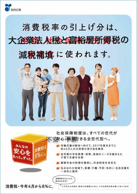 法人税下げるために消費税10%も取られる上に、消費税導入前はサラリーマン医療費1割負担だっのに3割に上げて、高齢者医療費は一律800円が最大3割に上げて、厚生年金60歳支給だったのに65歳まで遅らせている。何故私達がそこまで犠牲になる必要があるんだろう?