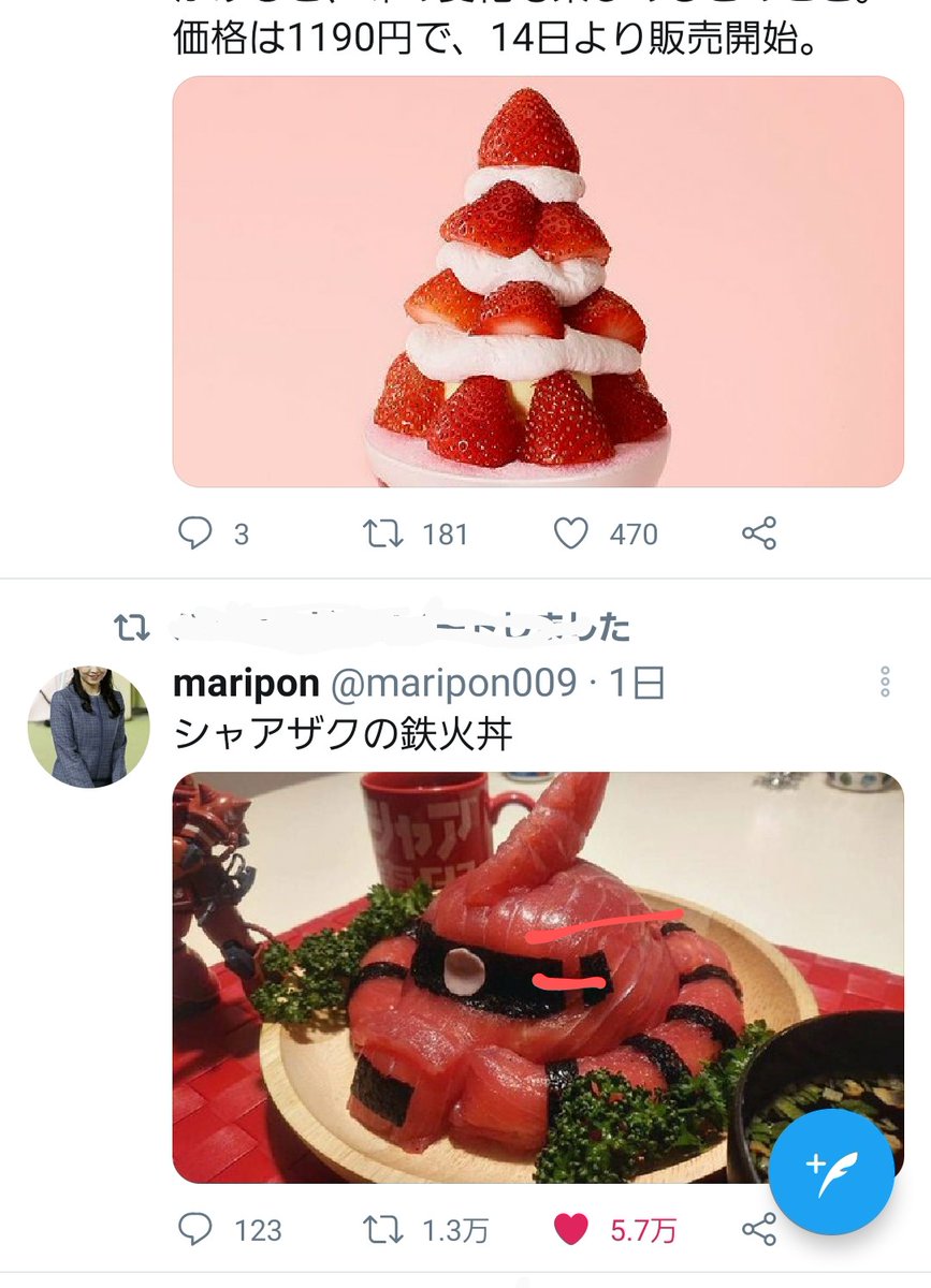 2021.01.13 ツイート maruシャアザクの鉄火丼 maripon@maripon009シャアザクの鉄火丼19:40 – 2021年01月13日返信リツイートお気に入り ツイートに対するネットの反応😎KAZㄘんん😎@kazu65amgクオリティ高い❣シャア専用ザク12:38 – 2021年01月15日返信リツイートお気に入りドルガッパ@No1Kaien箸入れれないよ⁝(ᵒ̴̶̷᷄൧̑ ᵒ̴̶̷᷅ )⁝12:18 – 2021年01月15日返信リツイートお気に入りセ潤@hijirijunかいうが好きそう12:17 – 2021年01月15日返信リツイートお気に入りいぬ@FzeMRJTZT8lz7FVすごぉ〜12:03 – 2021年01月15日返信リツイートお気に入り🐕だっちゃん@Miniature❤Dachslife🐕@fluorite_52これは すごいです🤭🤭12:01 – 2021年01月15日返信リツイートお気に入り日本刀@BGfCgwjgWy5acFKこれを食べたら3倍頑張れるかな。11:57 – 2021年01月15日返信リツイートお気に入りDJあきかん🥒@dj_akican_spnジオンのマグロはバケモノか‼️ (シャアの自画自賛)11:57 – 2021年01月15日返信リツイートお気に入りhiromi_jizoo@qBWBtKY9pm0RM9pありはありだろうけど…美味しそーに見えないのは…www #のどかな風景11:54 – 2021年01月15日返信リツイートお気に入り Aki Tsujimoto/JQ3AAO@BebenzaAceモノアイは生姜のようだ。11:48 – 2021年01月15日返信リツイートお気に入りとめいとうエニニ@@✝邪王真眼✝@aaa_____nemuくいてぇーーー!!!11:46 – 2021年01月15日返信リツイートお気に入り歌書 零(うたがき れい) / 創作系Vツイッタラー@utagaki_reiこれはシャア専用鉄火丼!! マグロの量も3倍に違いありません11:45 – 2021年01月15日返信リツイートお気に入り因果のねこですよろしくおねがいします@madoka_819パクツイだってよ。 元ツイはリプに11:14 – 2021年01月15日返信リツイートお気に入り熾一尉@Destroyer_118うわ、やば シャアはちっちゃい時憧れたわ10:48 – 2021年01月15日返信リツイートお気に入りエンブリヲ(調律者)@相互フォロー大歓迎@Embryo_Tuner通常の3倍の美味しさ😃10:47 – 2021年01月15日返信リツイートお気に入りるか@レインボータウンfmぺろりタイム12月17日20時@Lucachu_なるほど、、、09:56 – 2021年01月15日返信リツイートお気に入り 水音@4g8u0vマグが「シャア専用」!!!!!!!!09:53 – 2021年01月15日返信リツイートお気に入りトワイライト@KVREwX9txL5Q9TP鉄火丼美味しいよねぇ✨(チガウ)09:46 – 2021年01月15日返信リツイートお気に入りしんや@毎日自由で旅好きな人@Shinya_0811これは…食べるスピード3倍なるんかな🤭09:22 – 2021年01月15日返信リツイートお気に入りトラペジウム@Zium967アニメのキャラクターを模した食べ物が時々ありますがこれは インパクトあり過ぎる😅09:20 – 2021年01月15日返信リツイートお気に入りℜ𝔞𝔰𝔰𝔶𝔦(ラッシー)@_RxSxYどういう発想?08:59 – 2021年01月15日返信リツイートお気に入りミカド@fullmoonedgeスゲー出来‼️😆👍✨ 見せてもらおうか❗ 連邦のモビルスーツの性能とやらを‼️08:47 – 2021年01月15日返信リツイートお気に入りりえる@limism0818お!08:38 – 2021年01月15日返信リツイートお気に入り 【つげまつげ】とまんまるたいよう@runchocolaまぐろも、ザクも、超大好物なマルガリ君の目の前にだしたら、 いったいどうなるんだろう・・・。08:34 – 2021年01月15日返信リツイートお気に入りmaybesmile26@maybesmile261赤いウンコみたいだ08:28 – 2021年01月15日返信リツイートお気に入りRふぉーと@R12999322夢が一つ増えました08:19 – 2021年01月15日返信リツイートお気に入り小林愛実【ちょっと知っ得?】@KobayashiVLOG笑笑すごい😁👏✨笑笑↓↓↓07:52 – 2021年01月15日返信リツイートお気に入り龍 3/20〜21横アリ@Ryu_0123_SF凄いね😆07:45 – 2021年01月15日返信リツイートお気に入りだいちゃん@VmaxADV1350@daichan_JΣ(゚Д゚)はっ!!07:34 – 2021年01月15日返信リツイートお気に入り踊るクリスピーナ@adol201003ガンプラは自ゆ…いや、料理は自由だ!07:28 – 2021年01月15日返信リツイートお気に入りめてのん@Chucky♡@ysdysd12これはすぐ作ろっと(´Д`三´Д`*)hshs!!!!!!07:14 – 2021年01月15日返信リツイートお気に入りさくら@レブル500@REBEL5003スゴ過ぎる🎵😄🌼 シャア専用鉄火丼🍜07:09 – 2021年01月15日返信リツイートお気に入りLt.クワトロ・バジーナ大尉(ジオン公国軍日本支部)@FGeooDudpTJrEeD上手い!06:48 – 2021年01月15日返信リツイートお気に入りカール😽@KarlzJanssen3倍の量のマグロ使うてんのかな😽#シャア #シャア専用 #ガンダム06:42 – 2021年01月15日返信リツイートお気に入り秋山💖純子@shinyworld殿方わ、こーゆーの、喜ぶのだろうにゃあ〜🤔🤔🤔06:21 – 2021年01月15日返信リツイートお気に入りKenney MacNight@kenight1985アシも3倍早そう。04:06 – 2021年01月15日返信リツイートお気に入りトビ@STobimatuすげぇ02:27 – 2021年01月15日返信リツイートお気に入りみーさま@OVi0sK0EsDIy7gF通常の3倍旨い!!02:26 – 2021年01月15日返信リツイートお気に入りそると@deara315すげー02:24 – 2021年01月15日返信リツイートお気に入り和道。bye bye BIDENハヒフヘホ〜🎵@STAY_OR_ROLLING素晴らしい!職人魂!👍✨02:16 – 2021年01月15日返信リツイートお気に入りProbability@pro_babilityこれはすごいなぁ✨ 量めっちゃ多そうww02:03 – 2021年01月15