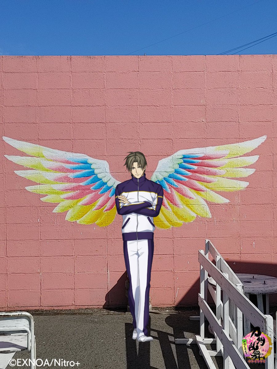 内番の長谷部といえば、翼が描いてある壁をバックに撮ったら謎の似合い方しててめちゃくちゃ笑った思い出。 https://t.co/fTr8X2ag8K