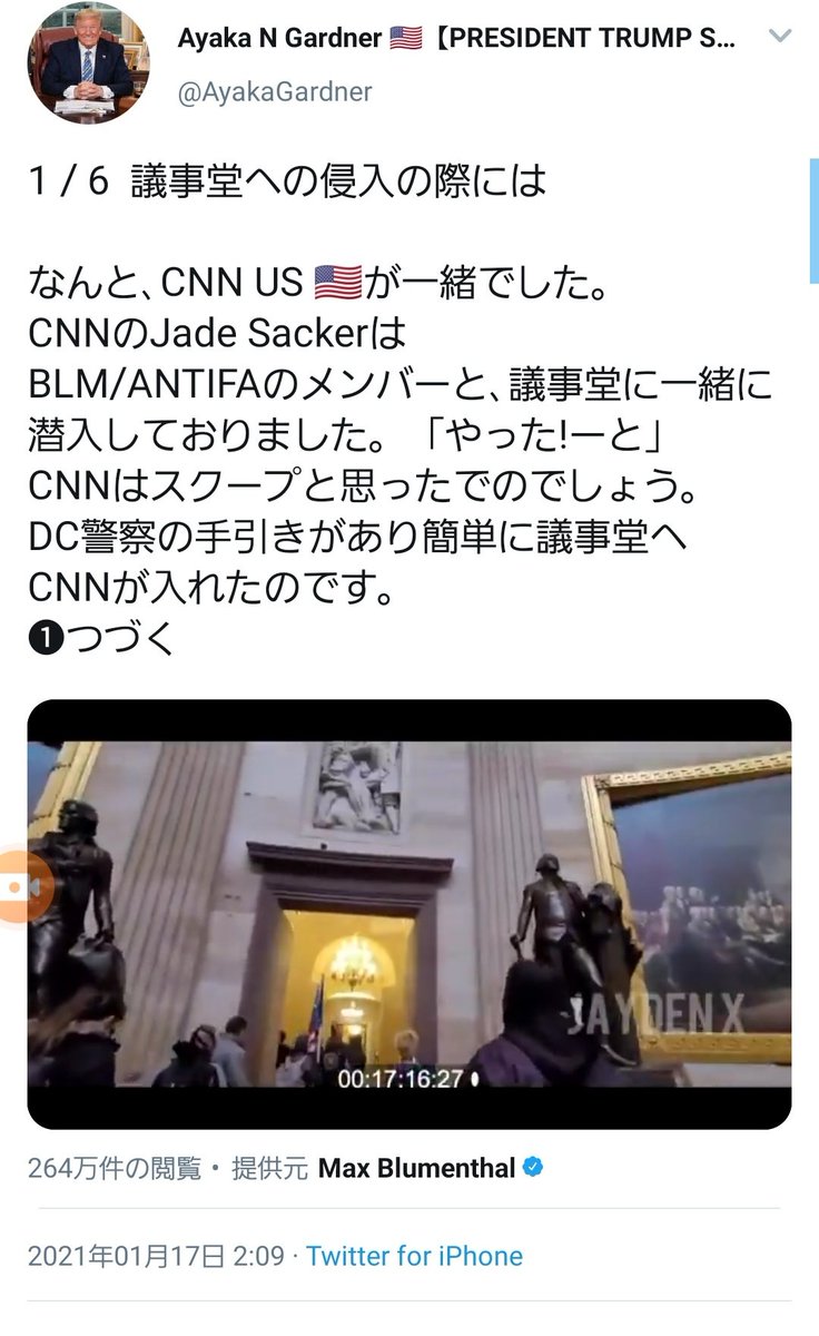 BLM/ANTIFAのメンバーと、議事堂に一緒に潜入しておりました。「やった!ーと」CNNはスクープと思ったでのでしょう。DC警察の手引きがあり簡単に議事堂へCNNが入れたのです。