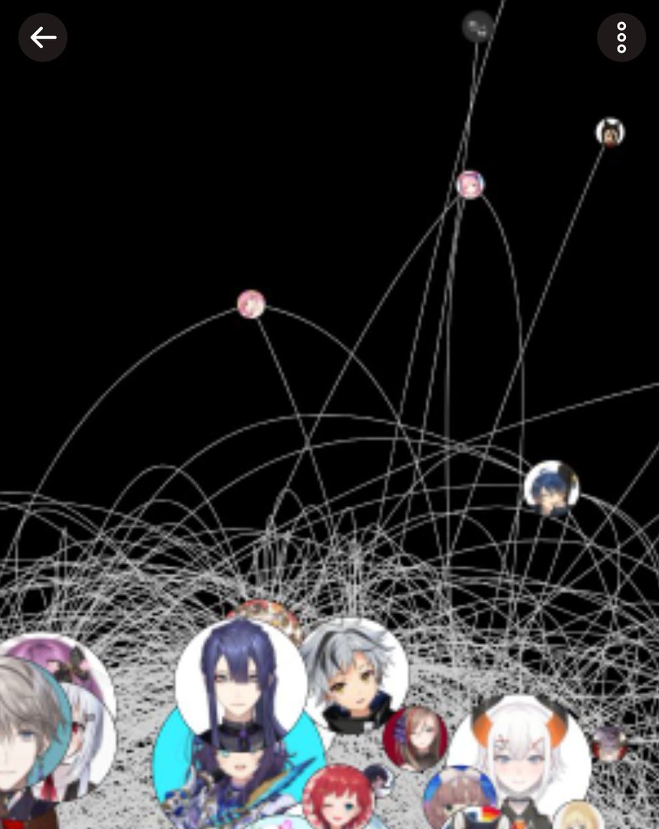 中央やや右下の方に芽衣様いるけど、コラボが多い人は紐付けする量が増えるから、アイコンが大きいのかな?
