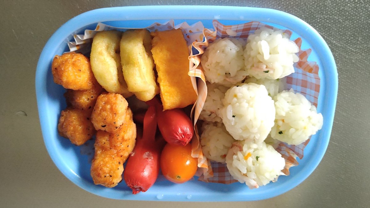 味つきのひと口おにぎりにしてる時点で大変な手間がかかってる。卵焼きはお弁当の定番みたいに軽く扱われてるけど専用の焼き器が必要だし少量では作りにくく難易度が高いのに小さくきれいに焼かれてる。あとおそらくお子さんが無理なく食べ切れる量にしてある。めっちゃちゃんとしてる。