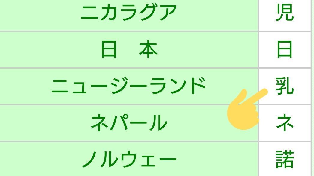 アメリカが「米」イギリスが「英」と略字があるのにわが国にないのは不公平だと我々ニュージーランドも略字として「乳」と呼んでくれ ってニュージーランドから正式に訴えがあったことがあると知って一気にニュージーランドとの心の距離が縮まりましたね