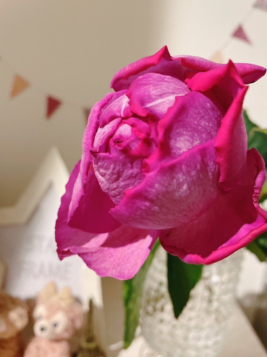ピンクジャケットにピンクの花束にゴールドのネックレス✨✨そして大きくて長くて綺麗な指で服を引っ掛けて…で、カメラ目線。。