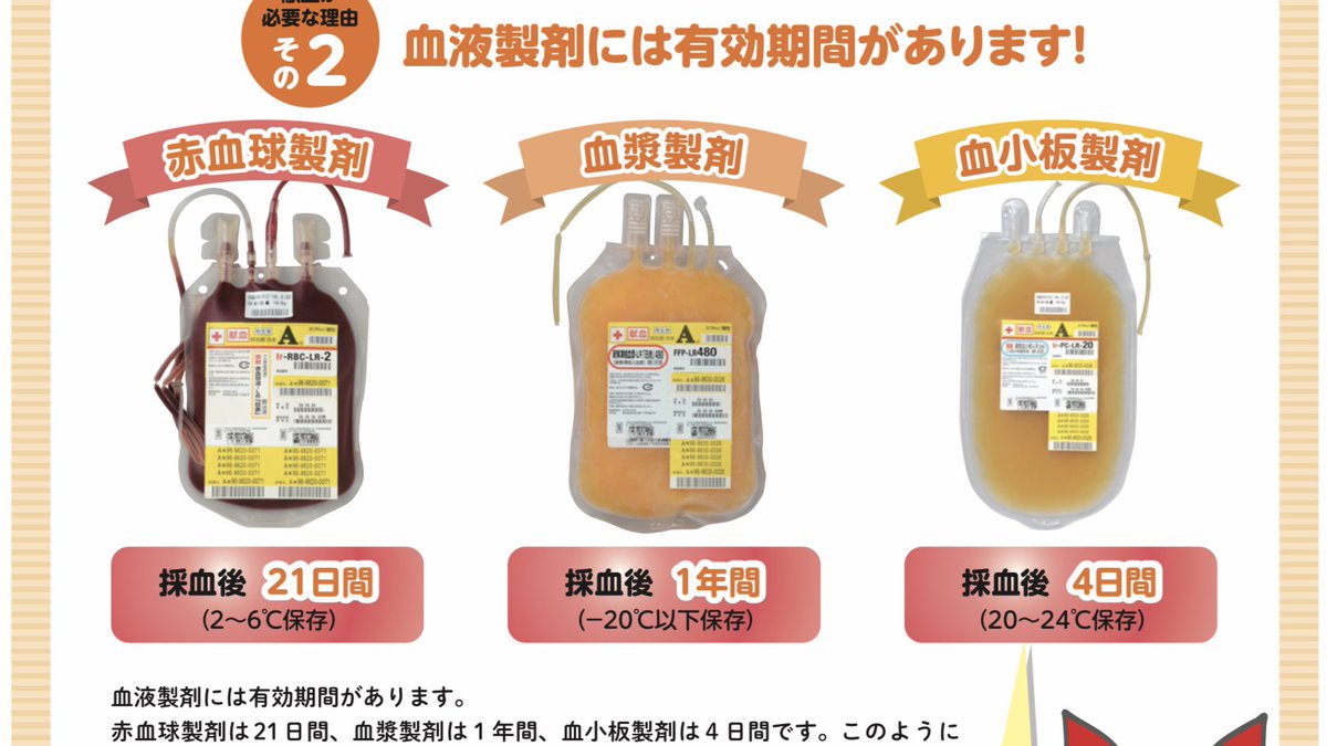 採血後4日間しか保たないので、献血者がいなくなると、すぐに枯渇するのです💦
