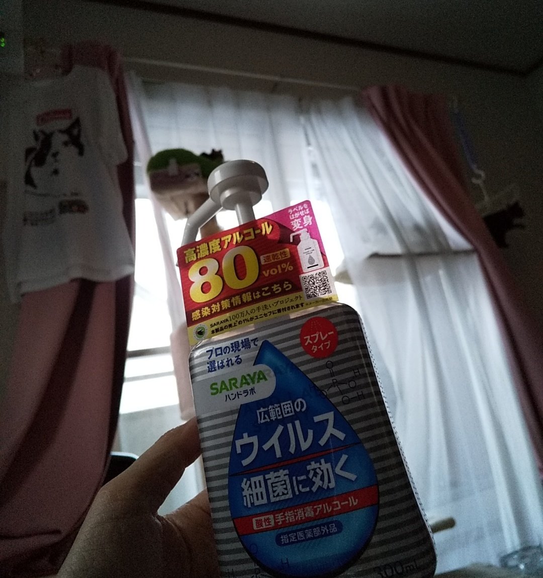 ノロウイルスってふつうのアルコール消毒じゃ効果無いんだけど、このサラヤの消毒液はノロウイルスにも効果あるように作られてるんだよ