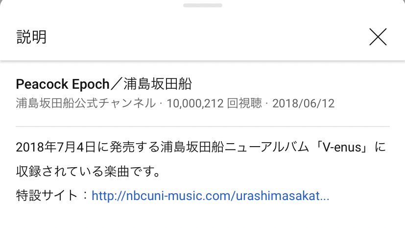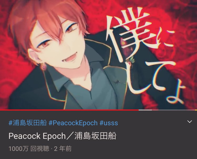 浦島坂田船の「Peacock Epoch」の再生回数が1000万再生されました。