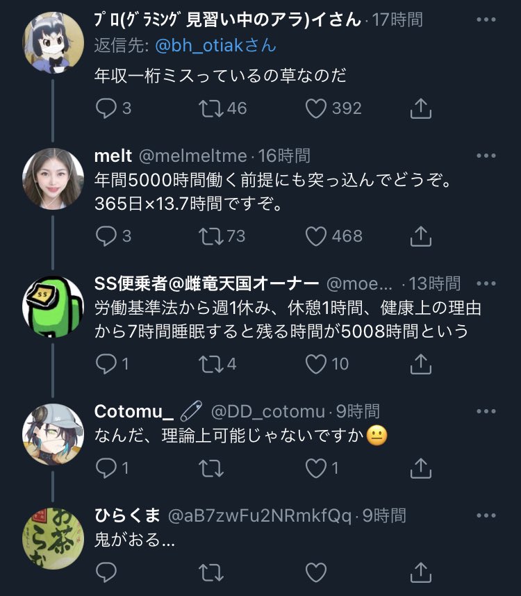 年間労働時間5000時間って狂ってるやんw