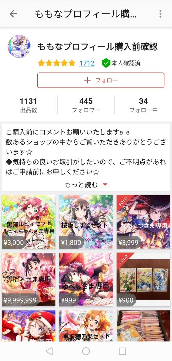 フリマアプリ「メルカリ」でももなプロフィール購入前確認さんが販売中