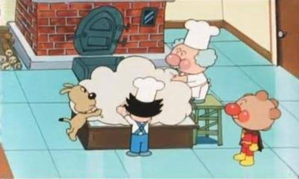 妖精のアンパンマンが人間界にいるイヌを妖精の世界に連れてきた。
