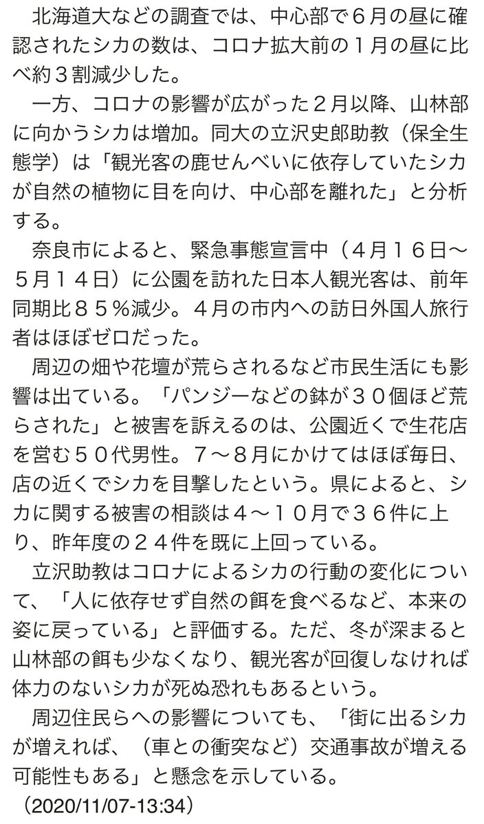 1番被害に巻き込まれてるのは、鹿もだけど管理している人達だからね。いい加減にしたら?