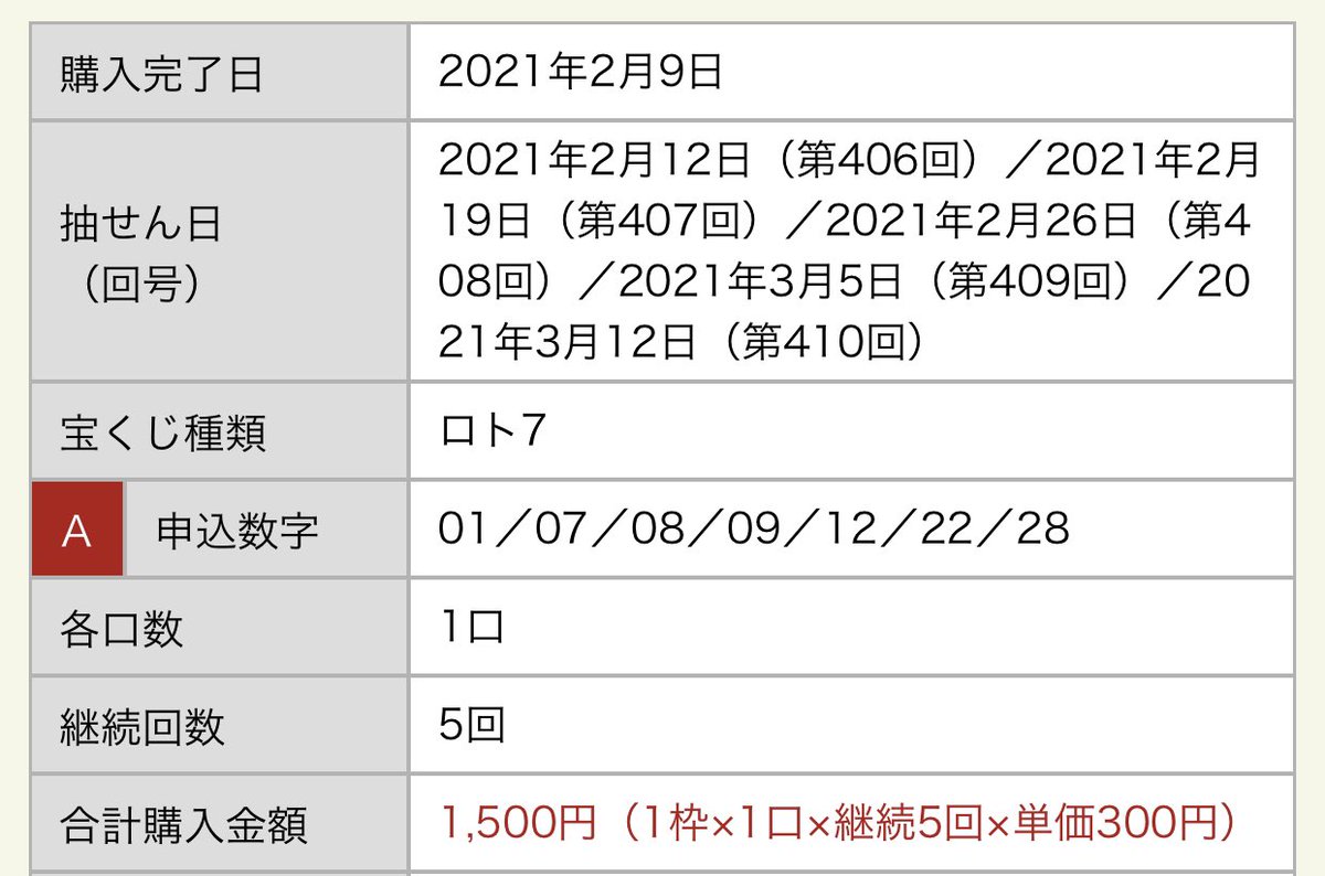 毎週1口自動購入でトータルで2,000円当たってたけど、それ以上に買ってるからまだ赤字。totoも合わせたらだいぶ赤字。1発で黒字になる日が待ち遠しい。