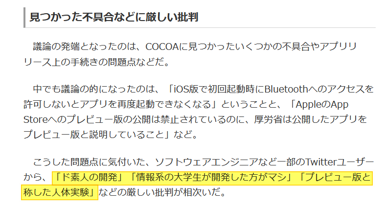 身分を明かし開発していたが、不具合に対して「ド素人の開発」「人体実験」などと批判が相次ぎ、現在は別会社に再々委託状況 https://t.co/UE8cZ04Xdg