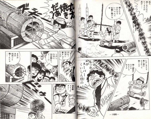 一本包丁満太郎はうんこの香りよりも頭の上に据え付けた鉄板でお好み焼き焼くババアとか蟹の格好しておにぎり握る蟹太郎とか、勝負相手がショッカー怪人みたいなのばっかなほうがやばい…