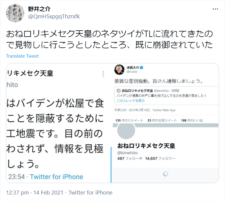 いや、たしかにジョークとしては度が過ぎてるけど津田さんの反応はピント狂い過ぎな上「通報しましょう」とか曲がりなりにも言論人の言うセリフじゃないだろ……。
