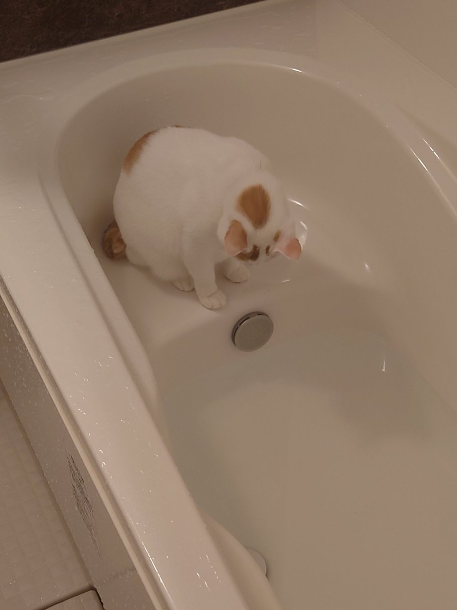 水に浸かるのは苦手なんだけど、貯まるのを眺めるのがすきみたいね