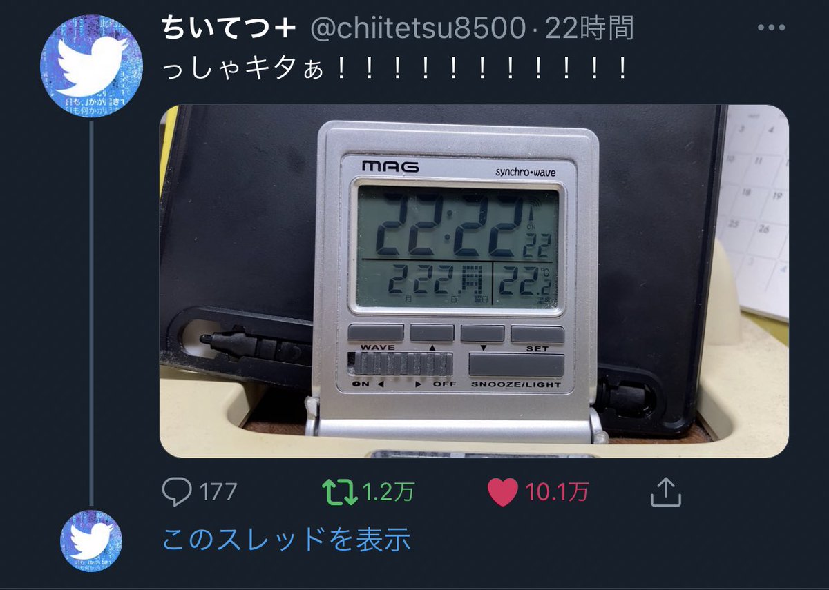 たまたま回ってきたRTの時間がちょうど22時間前でしたのであわせて_φ(・_・ https://t.co/9zc0wMxjG6