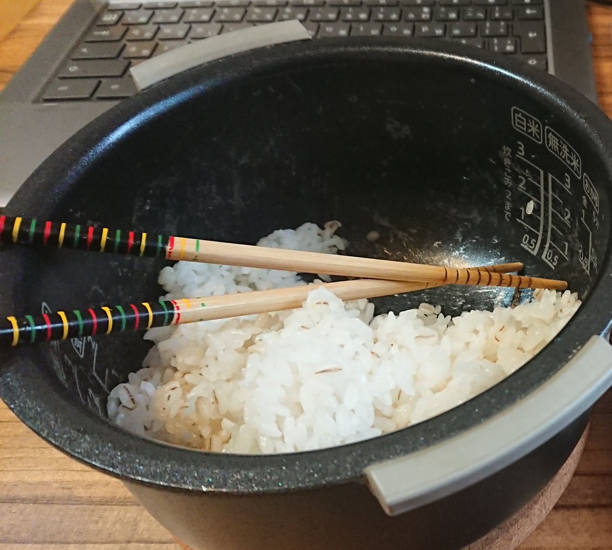 カレーの最後はこの様にご飯を鍋に入れて混ぜ混ぜして、大阪の自由軒のカレーみたいにする……これをやると鍋肌にくっついたカレーも取れるし、しかもこのカレーがマイウ