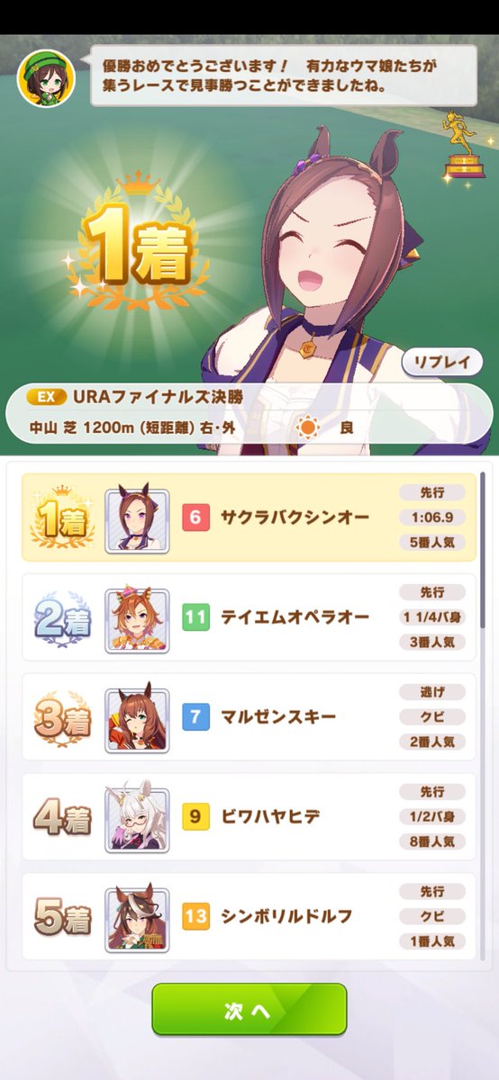 サクラバクシンオー育成もしやすい上にキャラもめちゃくちゃ面白いしで本当に楽しいから初めてやる人には絶対におすすめするマジで最初に育成して後悔しない