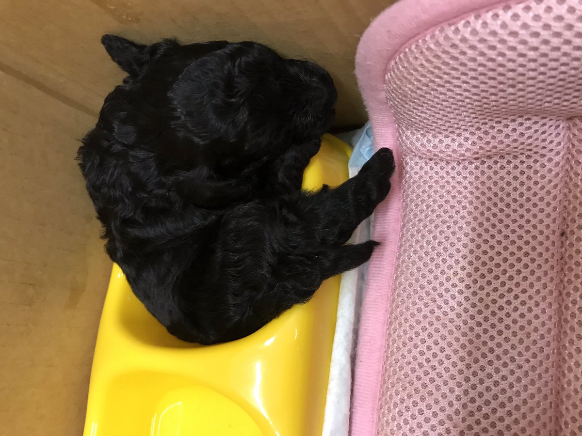と考えた超食いしん坊ポメラニアンの赤ちゃんの寝落ちした場所がこちら。#宗次郎Jr