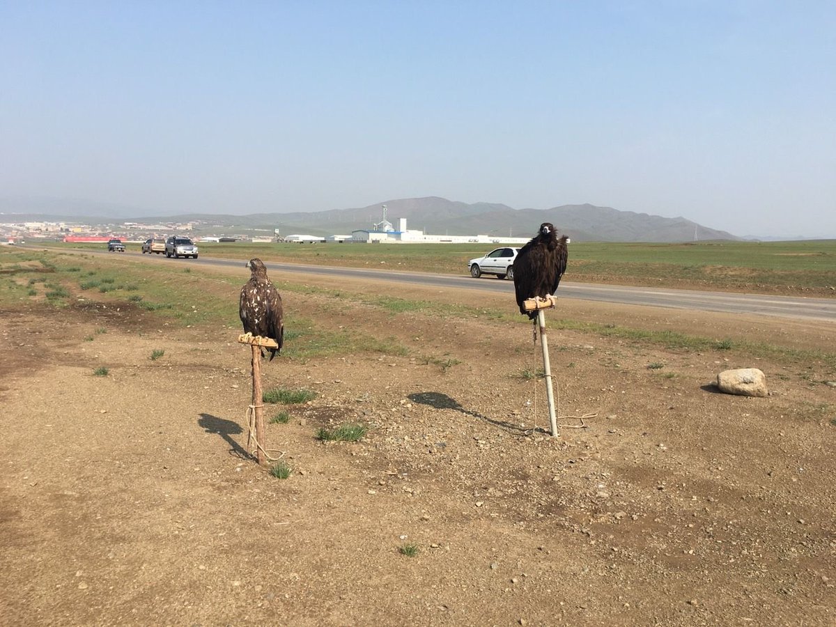 チンギスハンのどでかい像を見に行く途中にこんな感じの人いて腕に載せて写真撮ってもらいました https://t.co/o3zDoI08vE
