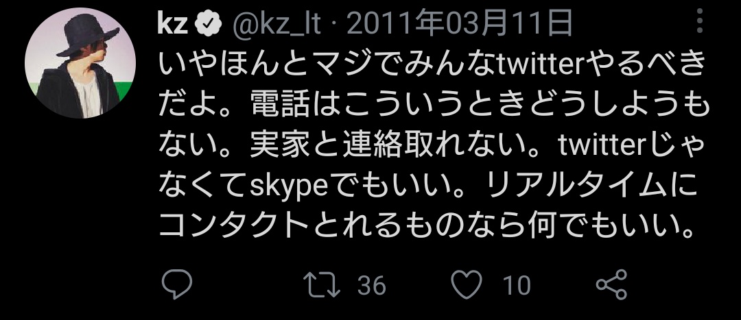 震災当時は、Twitterやってる余裕はなかったなぁ。