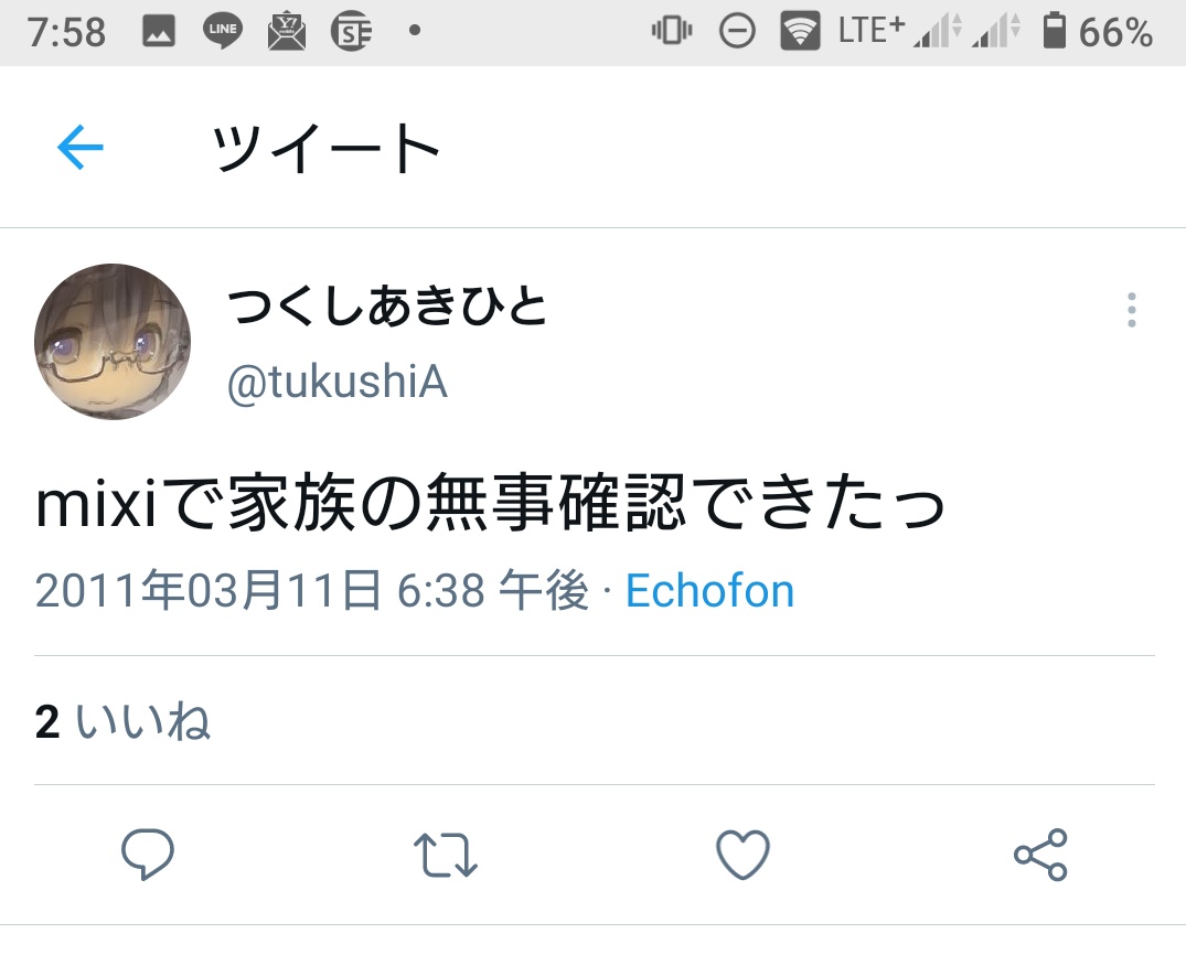 つくしあきひと 先生が家族の無事をmixiで確認してて、オゥ!となったのだ! https://t.co/JZYX1QsUBK