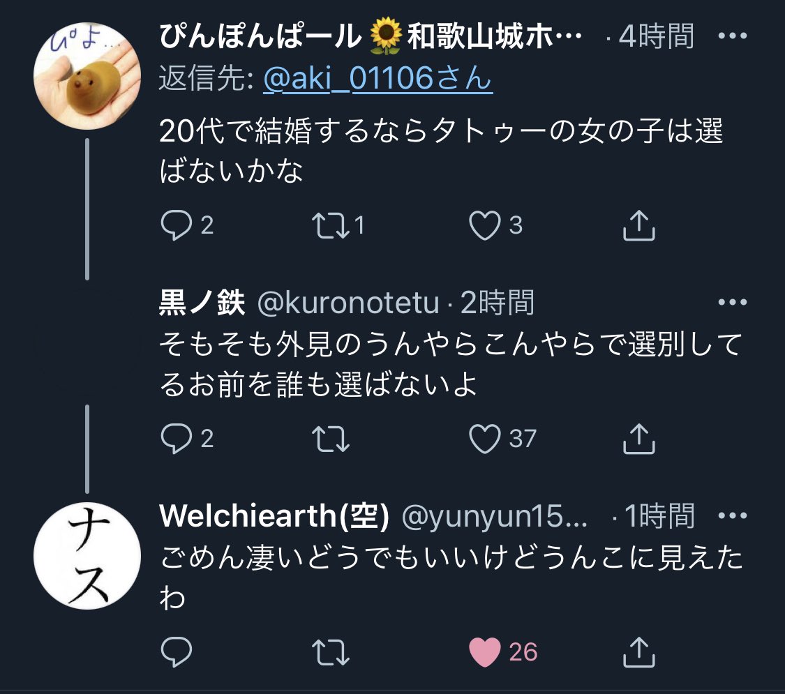なんでかこのツイートにタトゥー賛否やってるけど、それ本当に意図したことか?