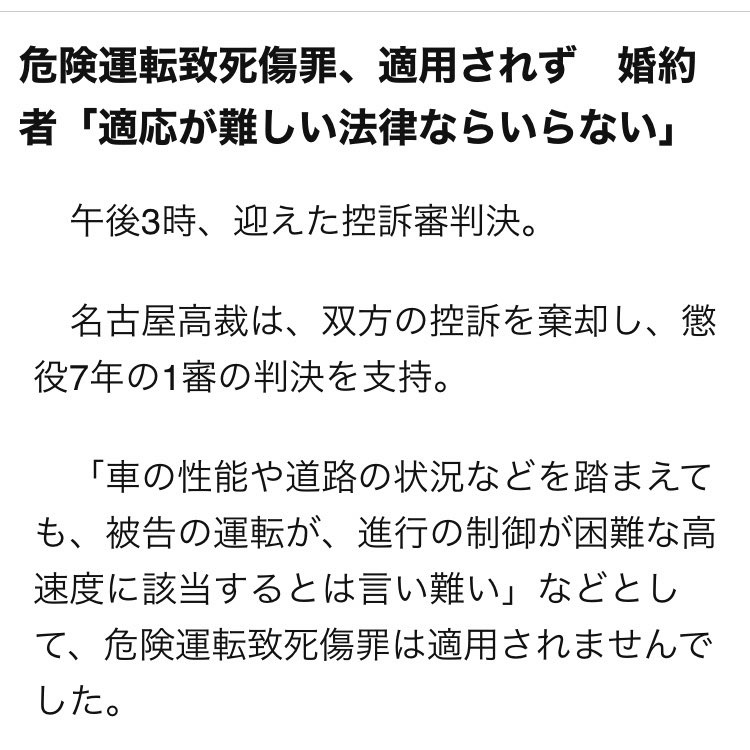 言って地裁も高裁も危険運転適用しないからねぇ…