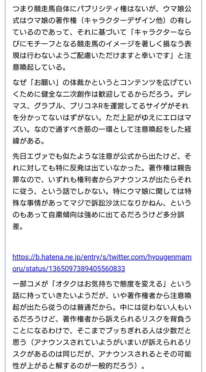 ウマ娘もあまり過激な二次創作をすると似たようなことになるのでは?