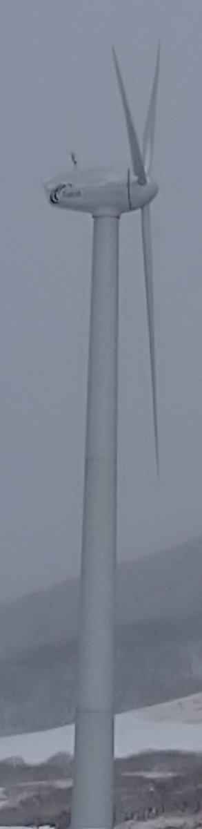 強風時は回転を止める筈が、故障か何かで回り続けて過熱、発火したんだろうか。螺旋の煙が禍々しい。