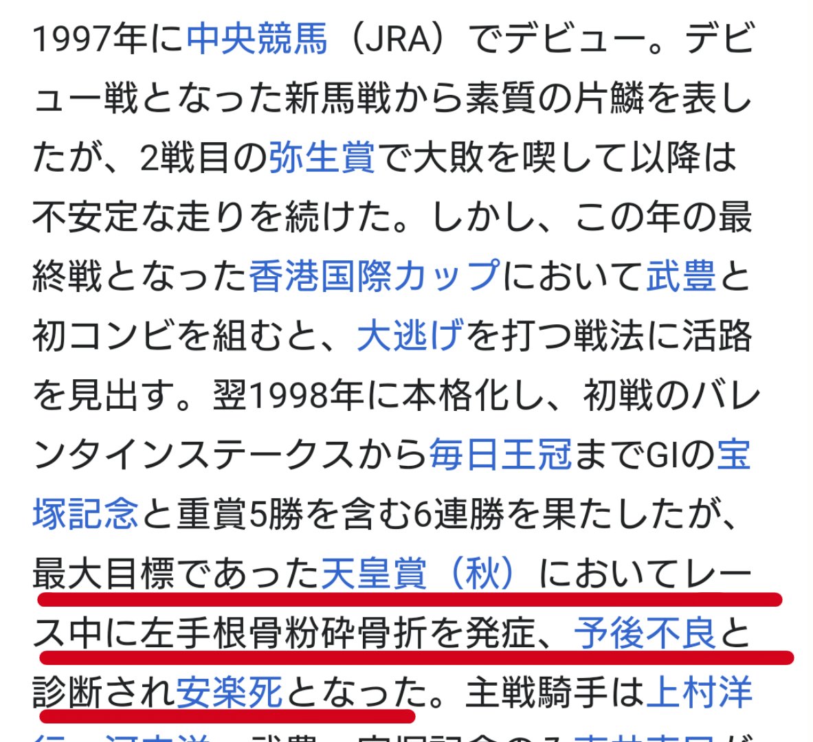 現役中から先が途切れてるサイレンススズカが気になったのでwiki見てみたら…