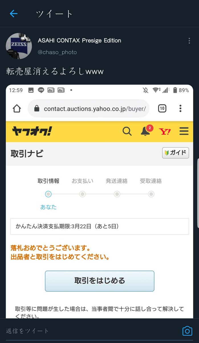 俺が金持ちならニート雇って囮出品させて全滅するまで駆逐したいな。 / “たび on Twitter: “RT> メルカリにカメラを3.5万で出品 ↓ 転売屋が商品情報パクってヤフオクに4万で出品(商品は手元に無く落札されたらメルカリのを買って送るヤツ ↓ メルカリにカメラ出し…”