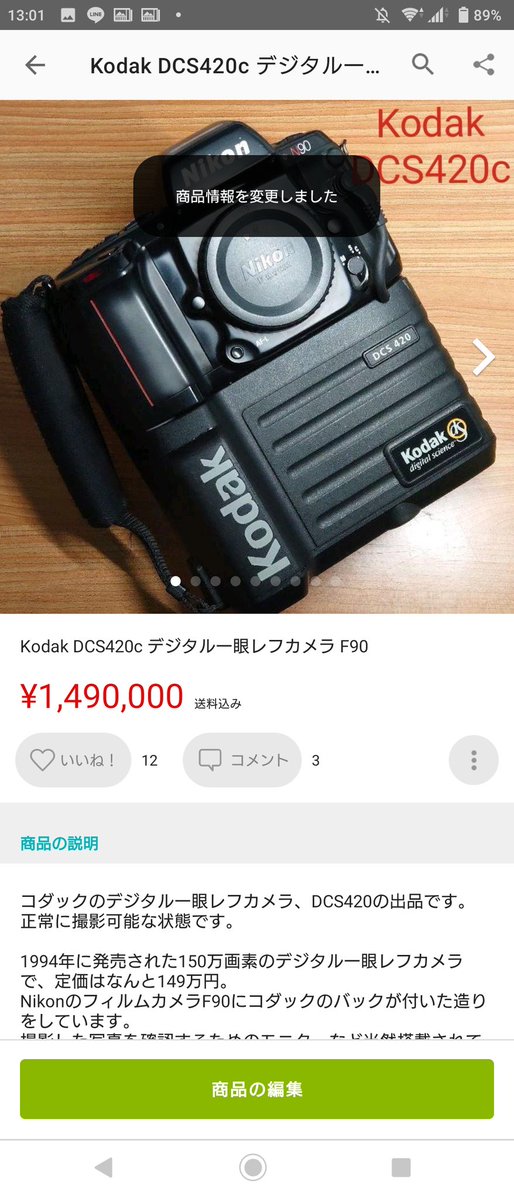 メルカリにカメラ出してた人が気づいてヤフオク即決即支払、メルカリの価格を149万円に変更